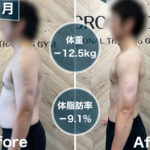 - ●5カ月ダイエットコースのお客様(30代男性)福岡大橋のパーソナルジムクロスビー⚫︎5ヶ月コース終了のお客様(30代男性) 5ヶ月間で体重−12.5kg、体脂肪率−9.1%、体内年齢−14歳という素晴らしい結果を出されました🙌✨ 週2回ハードなトレーニングと食事制限を徹底されみるみる体が変わっていき […]