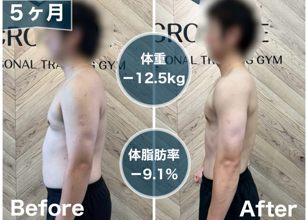 ●5カ月ダイエットコースのお客様(30代男性)福岡大橋のパーソナルジムクロスビー